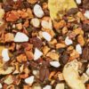 Apfelstücke, Bananenchips (Banane, Kokosnussöl), Kakaoschale, Ananaswürfel (Ananas, Zucker), gefr.-getr. Joghurtgranulat (MAGERMILCHJOGHURT, Zucker, Maltodextrin, modifizierte Stärke, Säurungsmittel: Zitronensäure), Kaffeebohnen, süße Brombeerblätter, Aroma, gefr.-getr. Bananenstücke, Sahne-Karamellstücke (gezuckerte KONDENSMAGERMILCH, Zucker, Glukosesirup, Butterfett, Feuchthaltemittel: Sorbit, Emulgator: Mono- und Diglyceride von Speisefettsäuren).