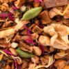 Unser „Birne-Walnuss“ vereint den Geschmack köstlicher Walnüsse mit einer feinen Süße von reifen Birnen. Gepaart mit Zimtstücken und Kardamom erhält die Mischung einen wunderbar winterlich, würzigen Charakter.