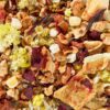 Apfelstücke, Ananaswürfel (Ananas, Zucker), Honigmelonenwürfel (Honigmelone, Zucker, Fruktose-Sirup), gesäuerte Apfelstücke (Apfel, Säuerungsmittel: Citronensäure), Aroma, Wassermelonenflocken, Hibiskusblüten, Rote Bete, süße Brombeerblätter, gelbe Katzenpfötchen, Holunderblüten.
