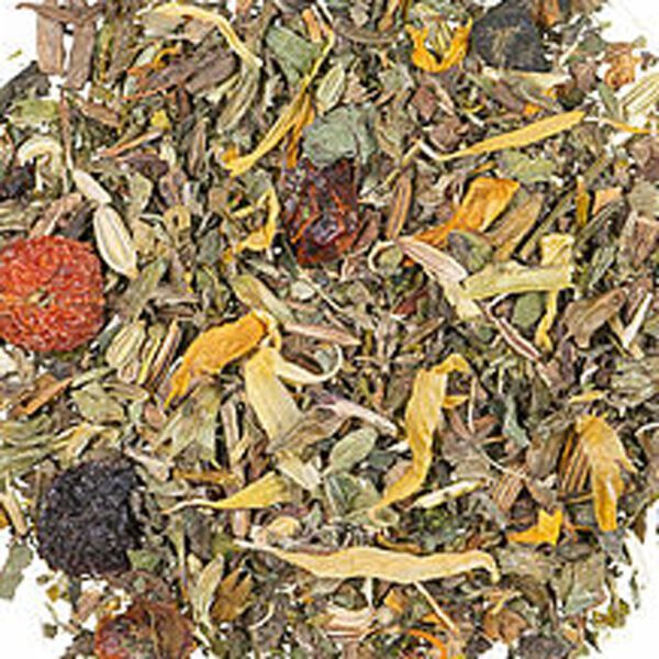 Baldrianwurzel, Passionsblumenkraut, Melissenblätter, Pfefferminzblätter, Fenchel, Kümmel, Anis, Hagebuttenschalen, Rosmarinblätter, Ringelblumenblüten
